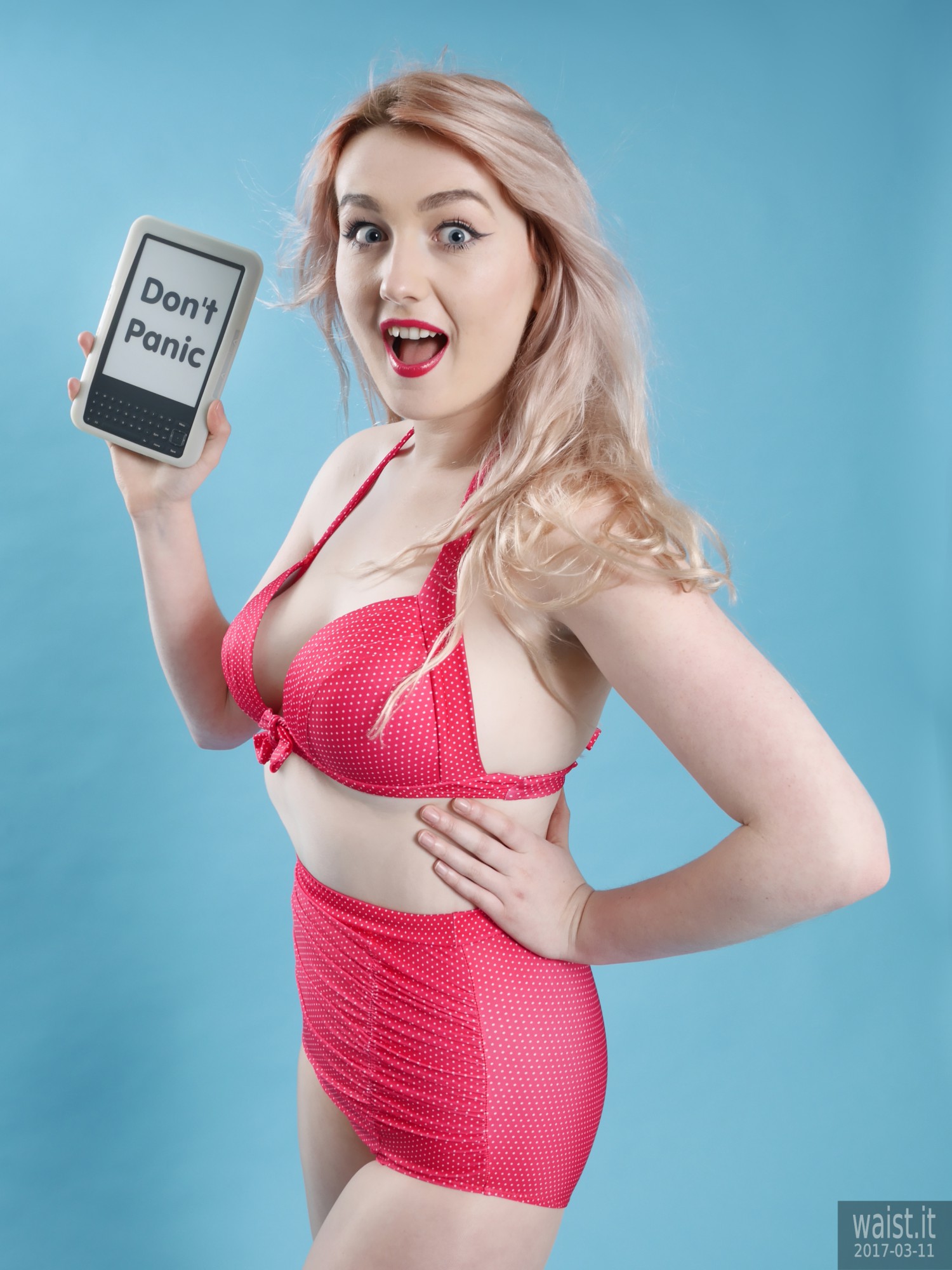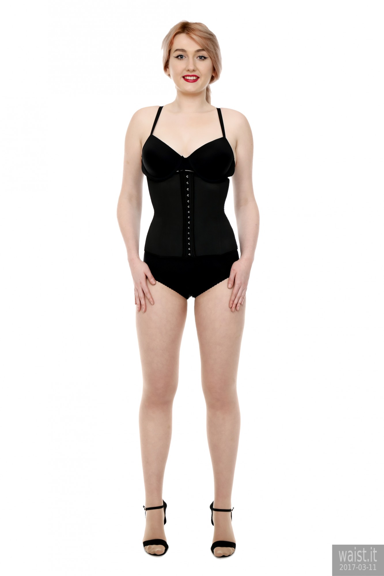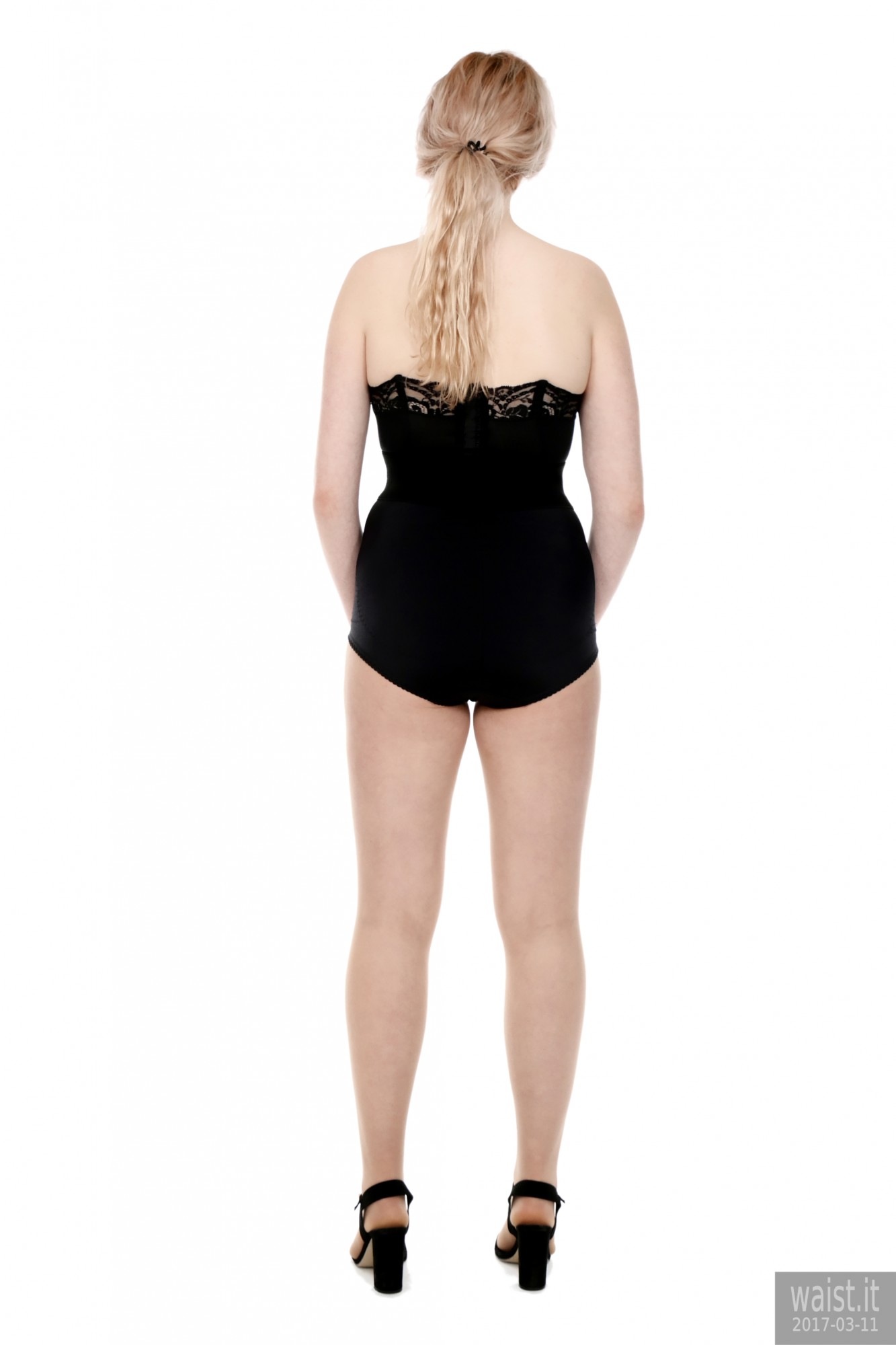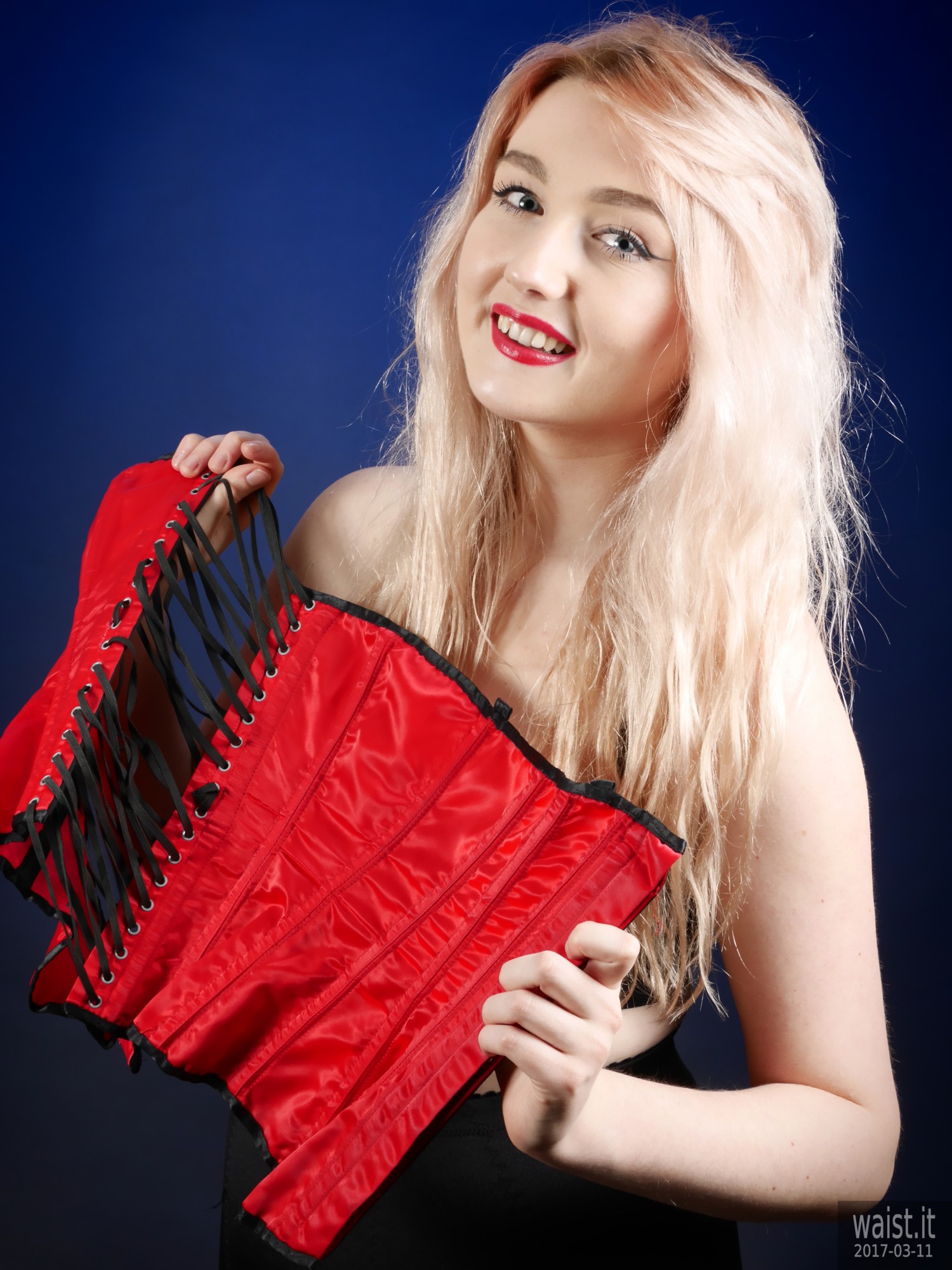 We did four separate sets and quite a few costume changes. She tried a variety of corsetry, ranging from 60’s style pantie-girdles worn as hot pants, through to a genuine Vollers overbust lace-up corset. She also brought her own waist-trainer. We had a lot of fun with that – filming her as she wriggled into it. However, as is often the case with really good shoots, our six hours together whizzed past in what seemed like about twenty minutes. Which meant the clock prevented us from trying all the available costumes. However, Lily does not live far from here. So hopefully we will be able to persuade her to come back for a rematch, in the not-too-distant future. 🙂