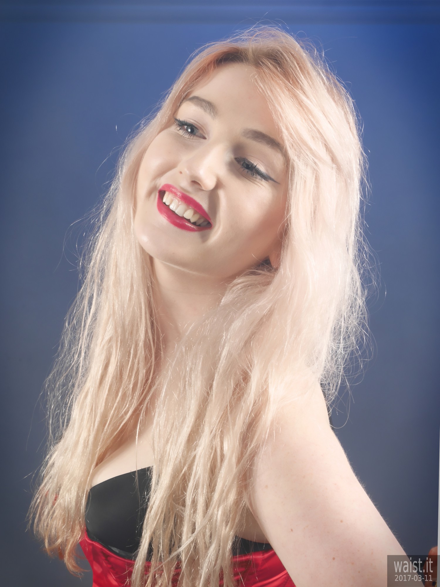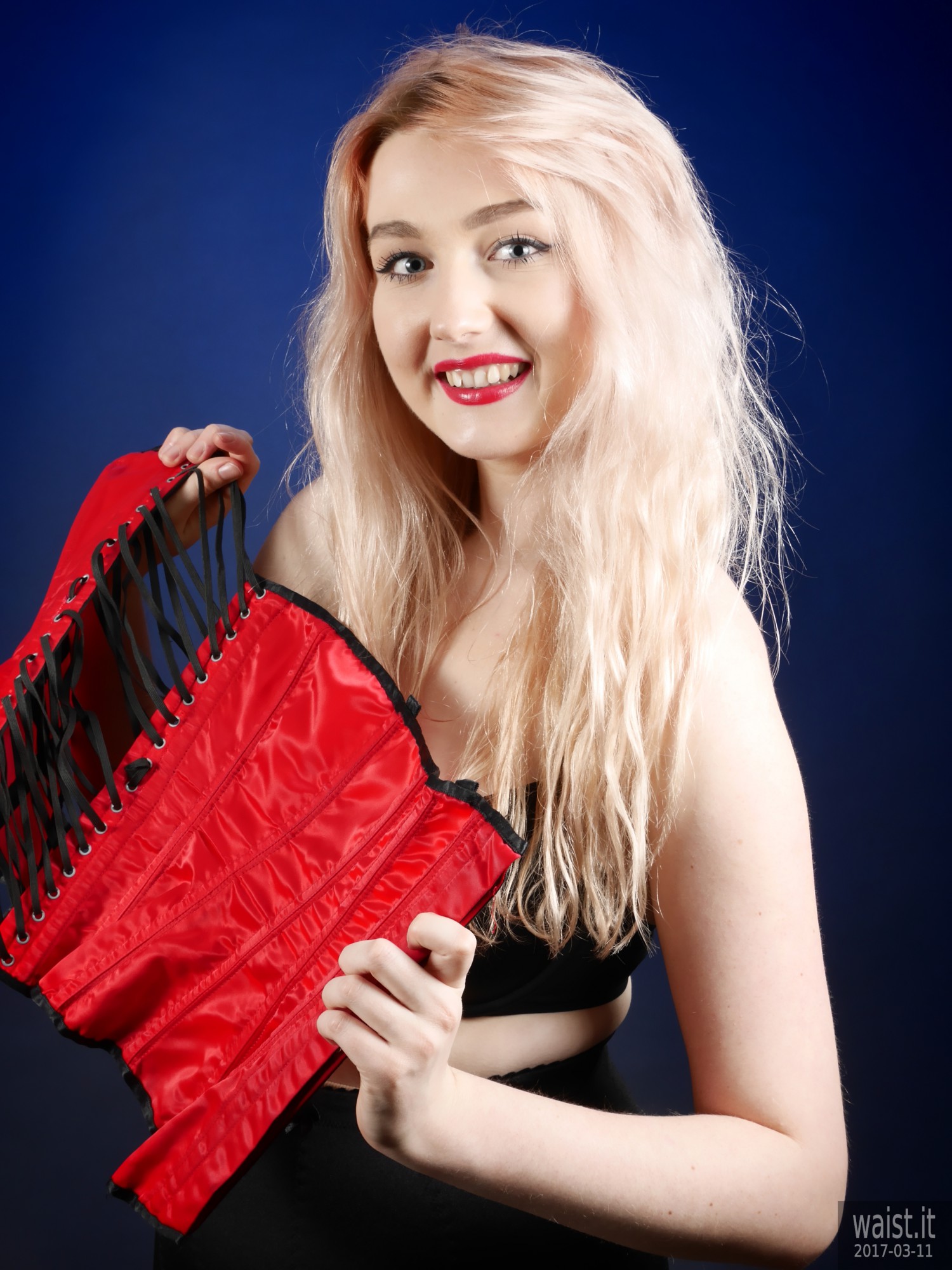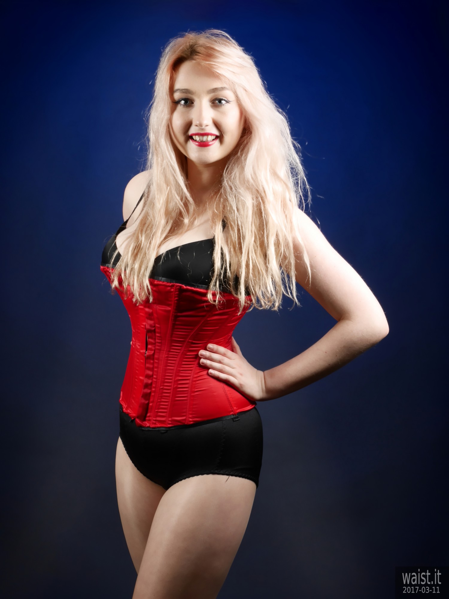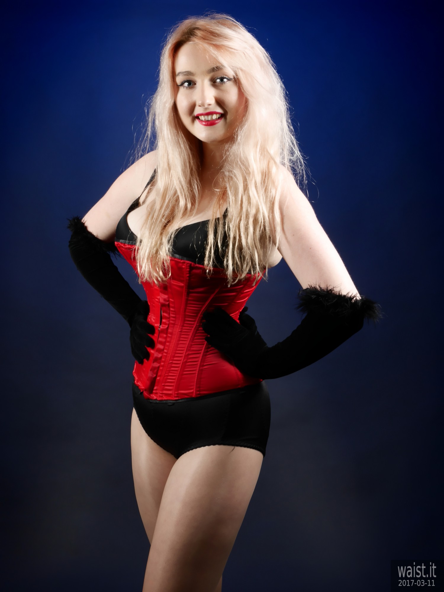 Turns out she is into waist-training. This compliments her delightfully hour-glass figure beautifully. It also dovetails nicely with my interest in vintage pin up and corsetry. Her look is further enhanced by her long strawberry-blonde hair and big blue eyes. Even better from my point of view, she has no silly piercings or tattoos – not even a small one. 🙂