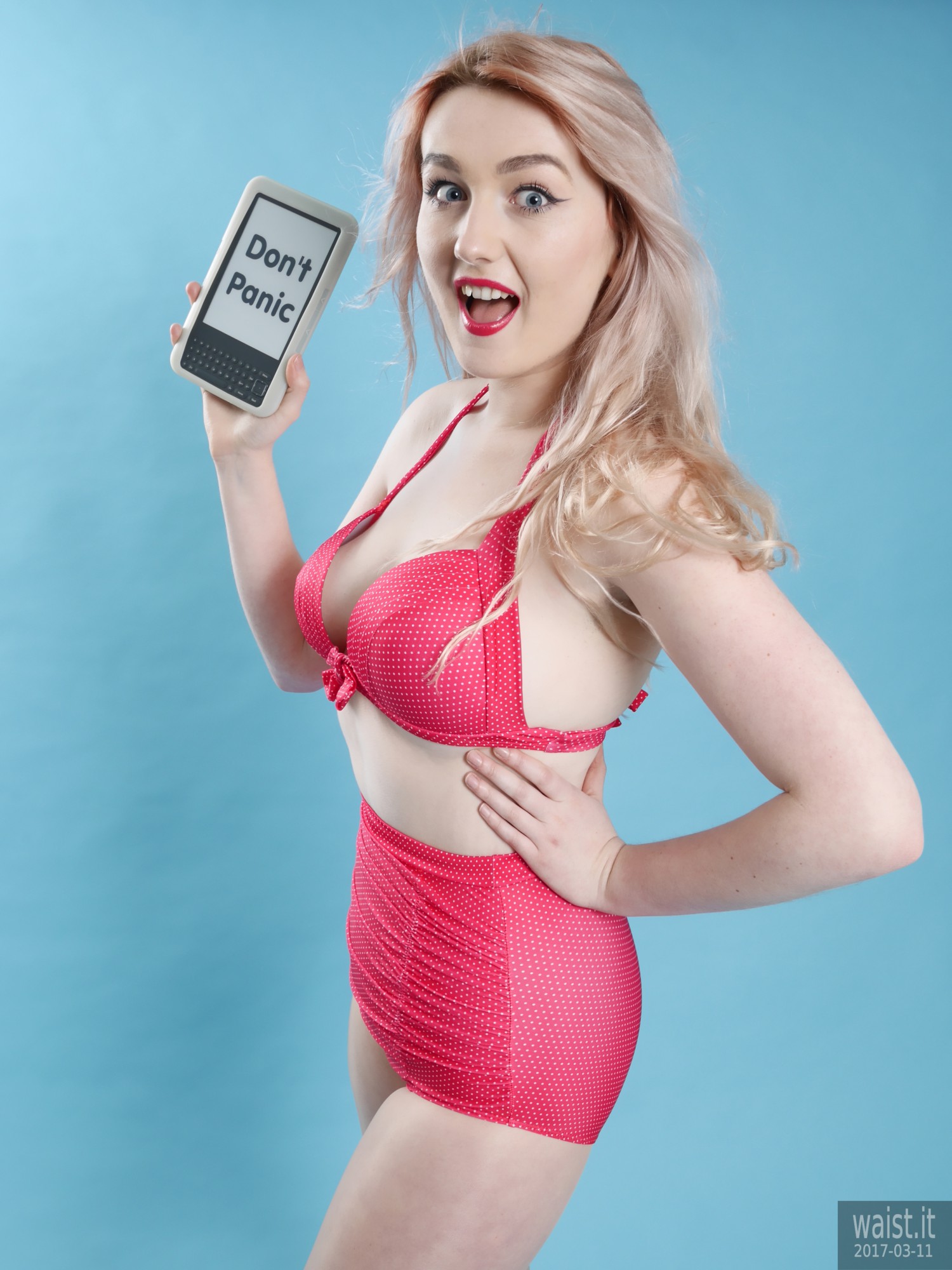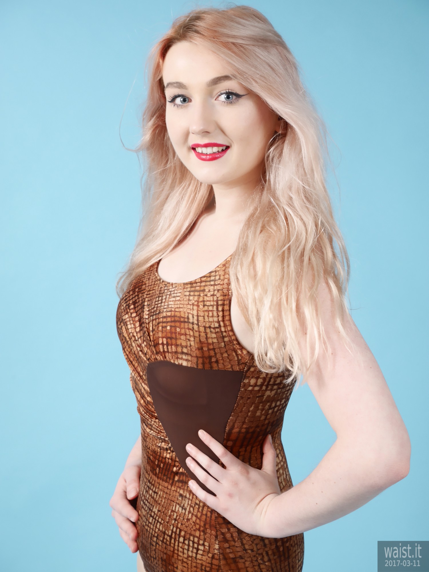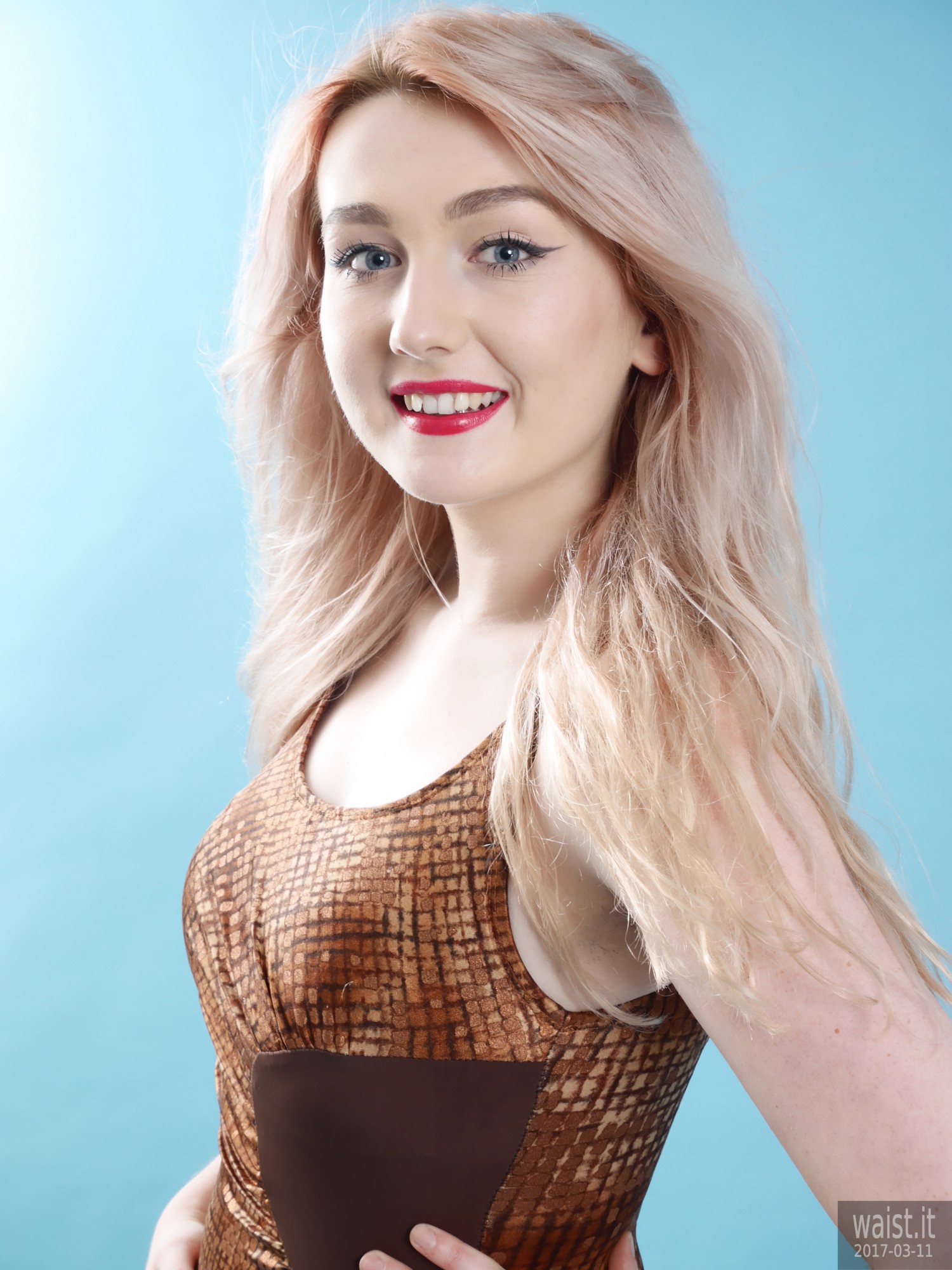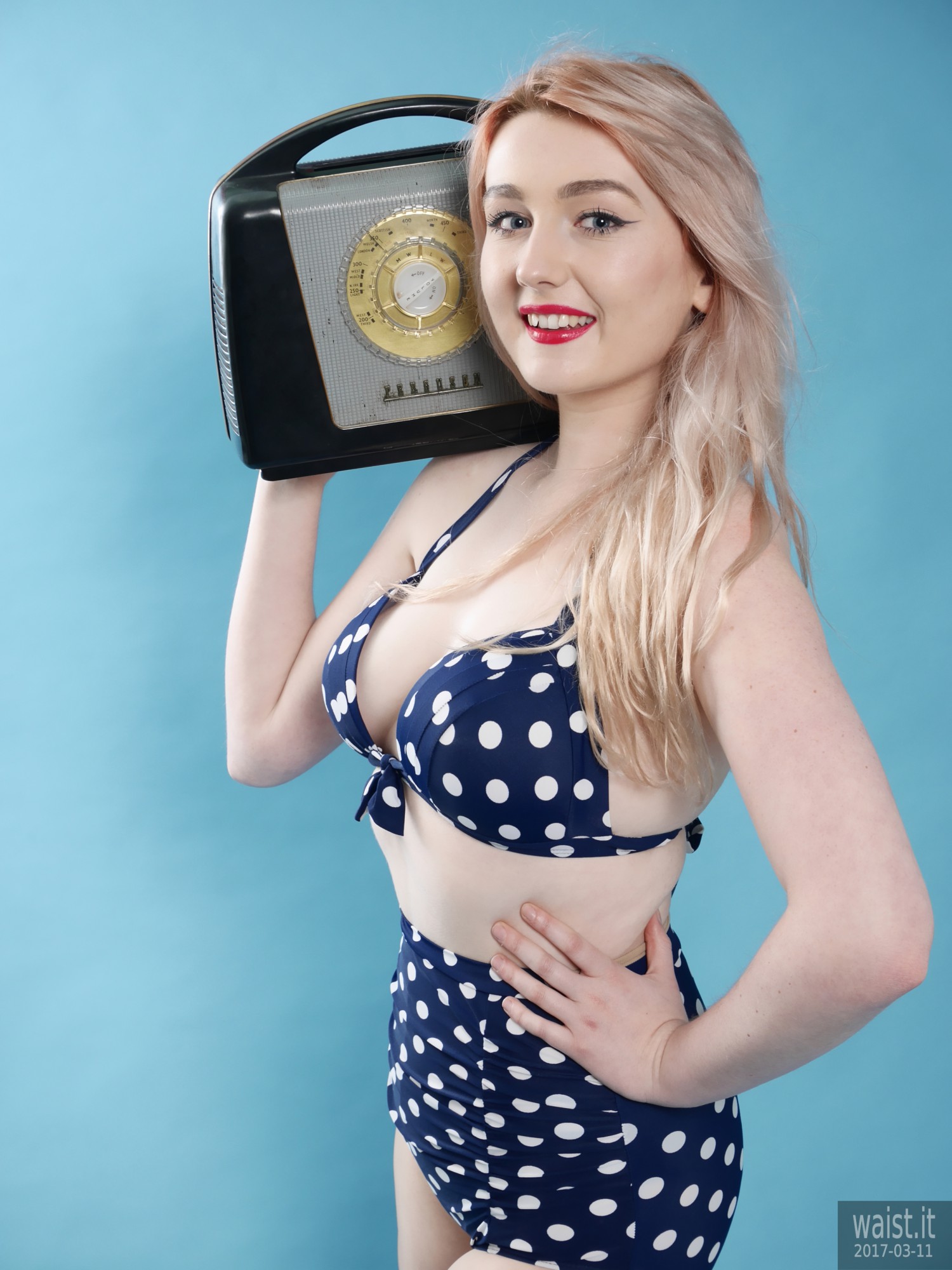 Turns out she is into waist-training. This compliments her delightfully hour-glass figure beautifully. It also dovetails nicely with my interest in vintage pin up and corsetry. Her look is further enhanced by her long strawberry-blonde hair and big blue eyes. Even better from my point of view, she has no silly piercings or tattoos – not even a small one. 🙂
